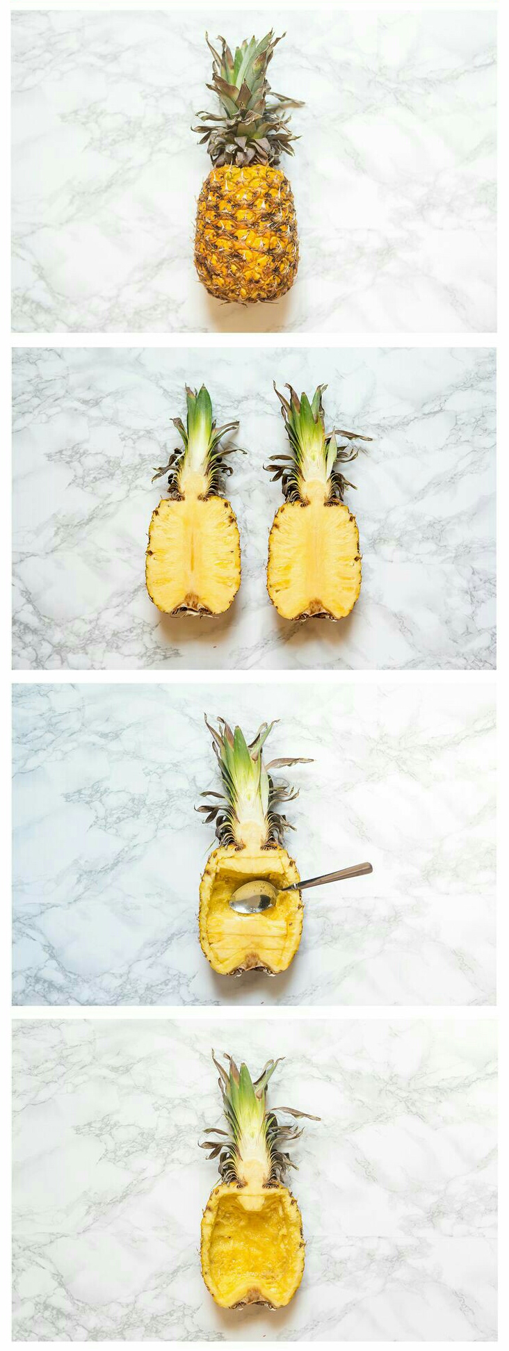 Protocolul spune că ananasul se serveşte sub formă de bărcuță (tăiat în două) şi se consumă cu lingurița.